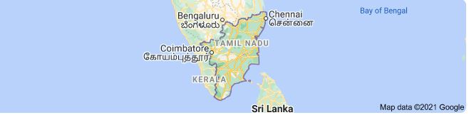 Tamil Nadu has the Bay of Bengal in the east and the Indian Ocean in the South. Her neighbouring states are Kerala in the West and Andra Pradesh in the north, and Karnataka in the Northeast.